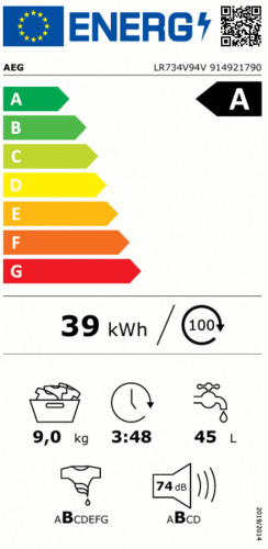 | Energiforbrug pr. 100 vaskecykler: | 39 kWh |
