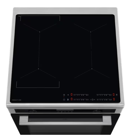 For sammenkobling af to zoner vertikalt. Når brofunktionen er aktiveret, kan du anvende ekstra stort kogegrej i tilberedningen og regulere varmetrinnet samtidigt på begge zoner.
